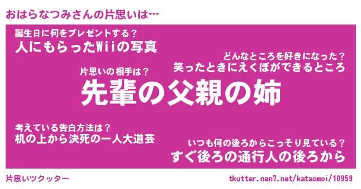 | 胡散臭い通販商品みたいなあだ名 | 『モテモテ間違いなし水晶球…その名も「おはらなつみ」』 |