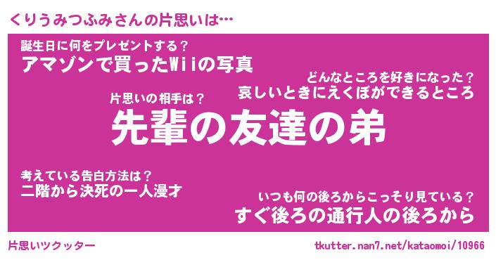 | 胡散臭い通販商品みたいなあだ名 | 『モテモテ間違いなし霊験あらたかなお札…その名も「くりうみつふみ」』 |
