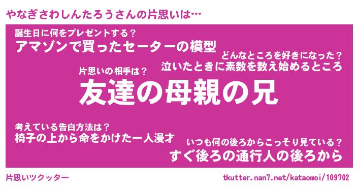 | 胡散臭い通販商品みたいなあだ名 | 『億万長者になれるブレスレット…その名も「やなぎさわしんたろう」』 |