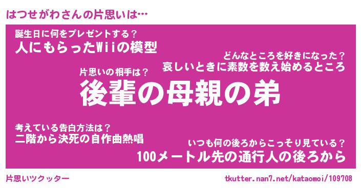 | 胡散臭い通販商品みたいなあだ名 | 『モテモテ間違いなしブレスレット…その名も「はつせがわ」』 |