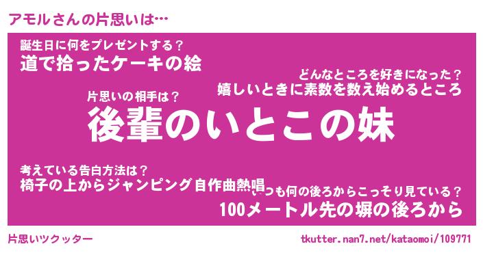 | 意味不明あだ名 | 『ペロリンアモル』『アモルフォーエバー』 |