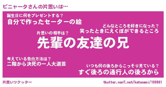 | ヘコむあだ名 | 『ピニっふぃ~』『つくし』 |