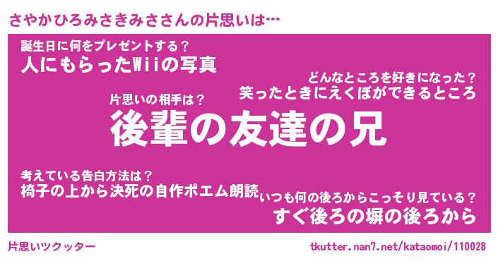 | ツイッター | さやかひろみさきみささんのツイッターID『namakemono_nyan』 |
