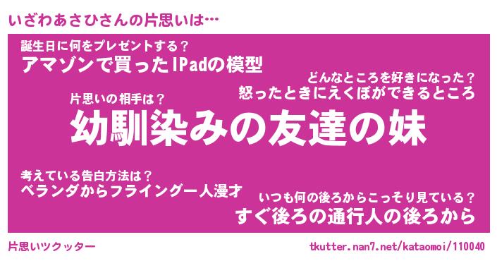 | 男性向けラノベタイトル風あだ名 | 『いざわあさひの憂鬱』 |
