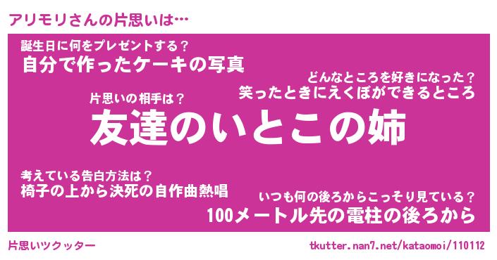 | ヘコむあだ名 | 『アリにゅー』『牛乳』『アリお』 |