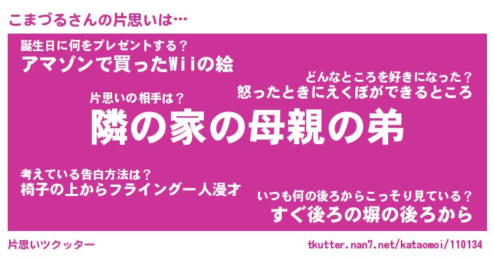 | ヘコむあだ名 | 『こまにー』『酢こんぶ』『こま太郎』 |