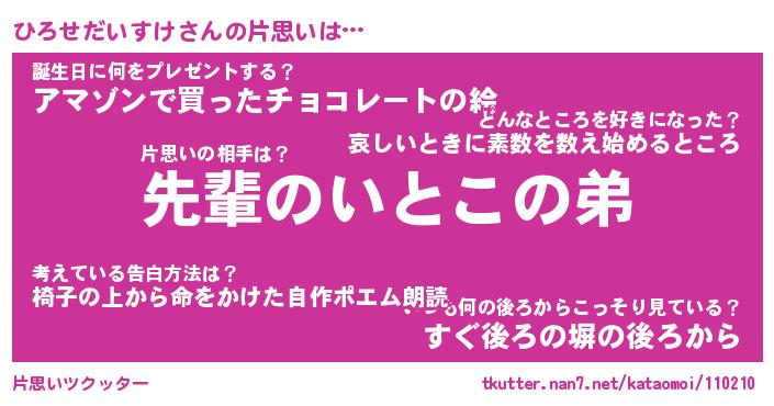 | 胡散臭い通販商品みたいなあだ名 | 『モテモテ間違いなし水晶球…その名も「ひろせだいすけ」』 |