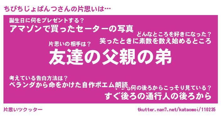 | 胡散臭い通販商品みたいなあだ名 | 『億万長者になれる水晶球…その名も「ちびちじょぱんつ」』 |