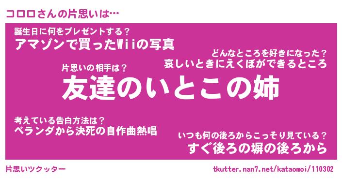 | っっっっっっっw …「あべせいた」 | 3月04日 01:50 |
