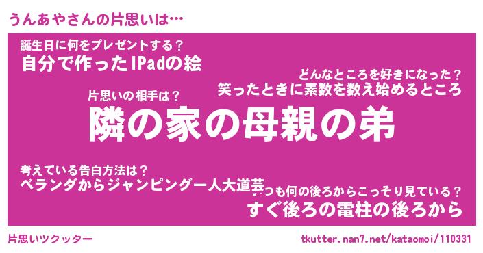 | っっっっっっっw …「あべせいた」 | 3月04日 01:50 |