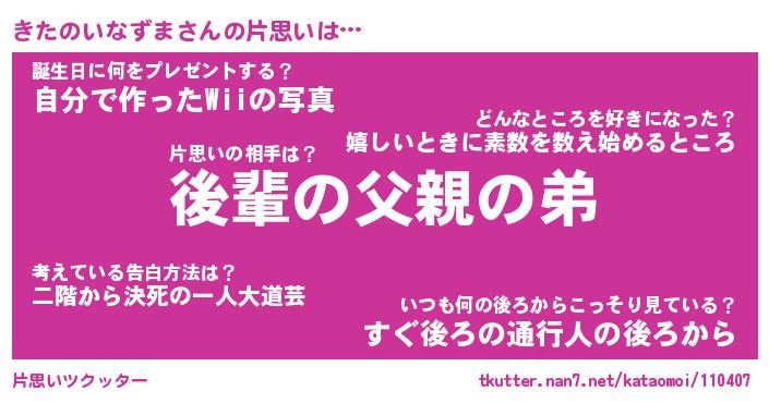 | ヘコむあだ名 | 『きたにゅー』『牛乳』『きた太郎』 |