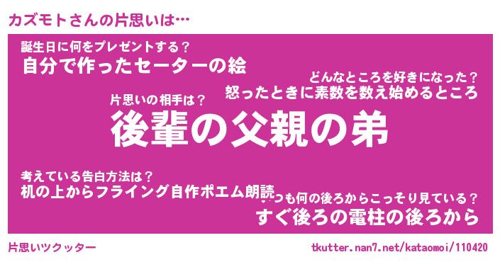 | 2回繰り返すあだ名 | 『カズカズ』『カカズズ』 |