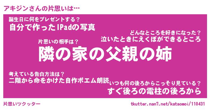 | 胡散臭い通販商品みたいなあだ名 | 『必ず成功する水晶球…その名も「アキジン」』 |