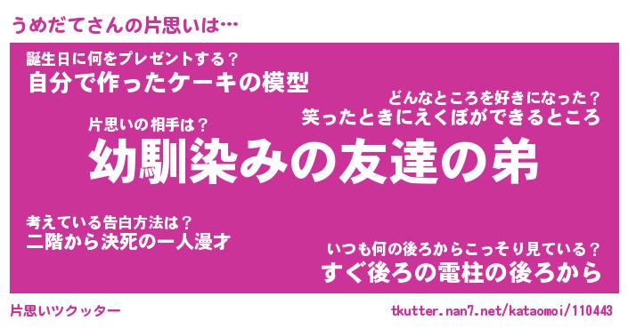| 男性向けラノベタイトル風あだ名 | 『うめだての憂鬱』 |
