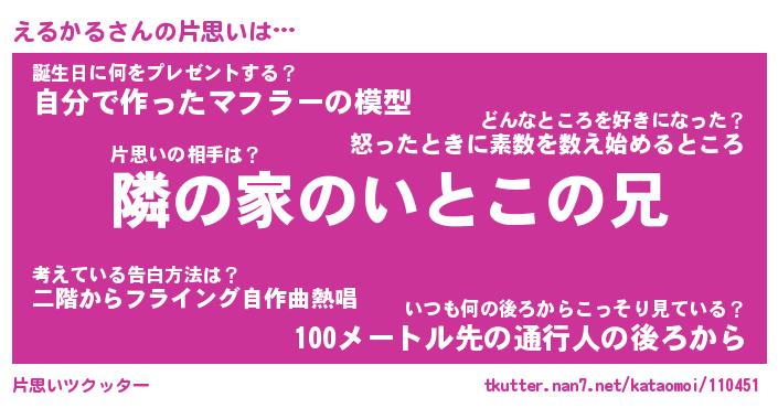 | 胡散臭い通販商品みたいなあだ名 | 『モテモテ間違いなし水晶球…その名も「えるかる」』 |
