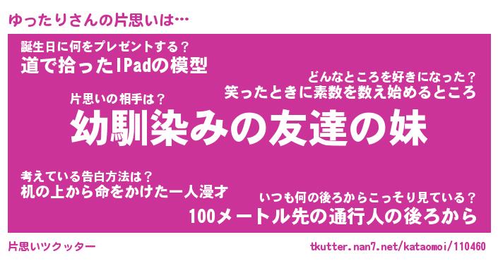 | 男性向けラノベタイトル風あだ名 | 『ゆったりの憂鬱』 |