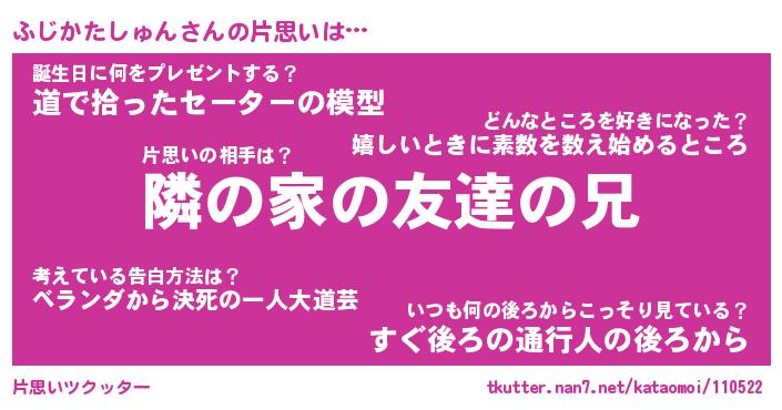 | 胡散臭い通販商品みたいなあだ名 | 『必ず成功する霊験あらたかなお札…その名も「ふじかたしゅん」』 |