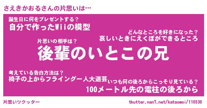 | ヘコむあだ名 | 『さえもー』『つくし』『さえお』 |