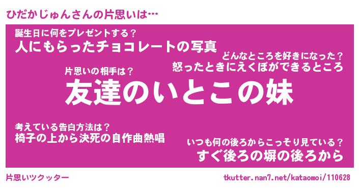 | 伝説のあだ名 | 『封印されしスナイパーひだかじゅん』 |