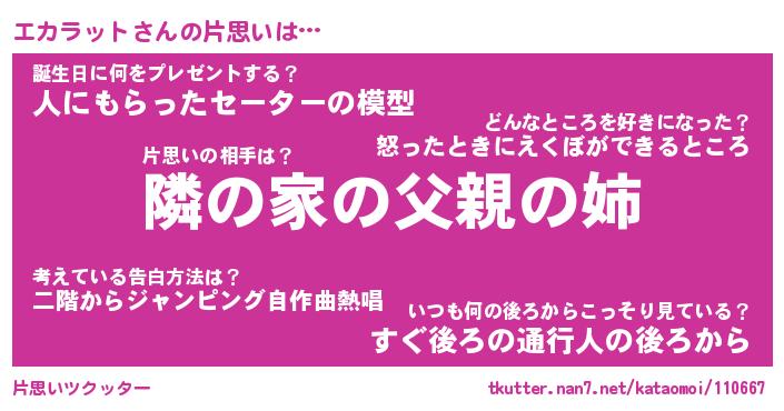 | 男性向けラノベタイトル風あだ名 | 『エカラットの憂鬱』 |