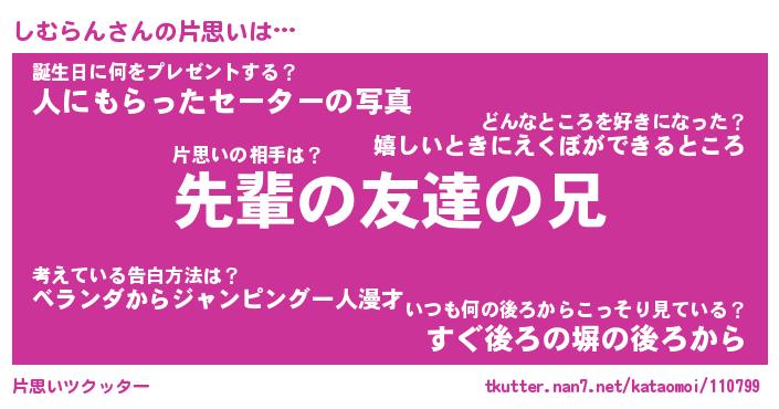 | ヘコむあだ名 | 『しむっふぃ~』『つくし』 |