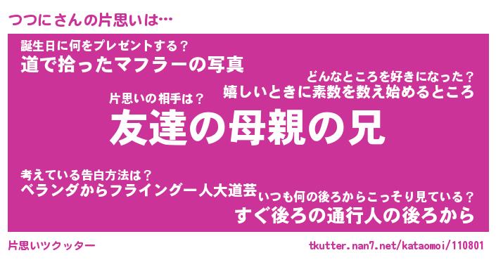 | ヘコむあだ名 | 『つつにー』『豆乳』『つつを』 |