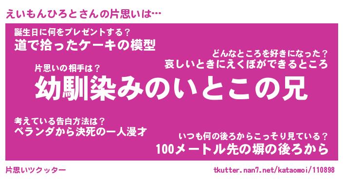 | 男性向けラノベタイトル風あだ名 | 『えいもんひろとの憂鬱』 |