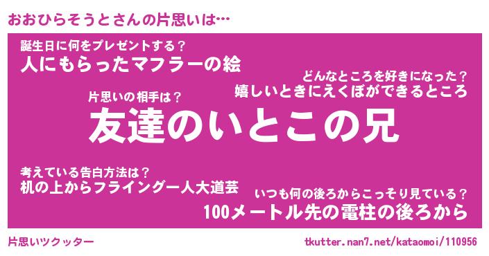 | 胡散臭い通販商品みたいなあだ名 | 『億万長者になれる霊験あらたかなお札…その名も「おおひらそうと」』 |