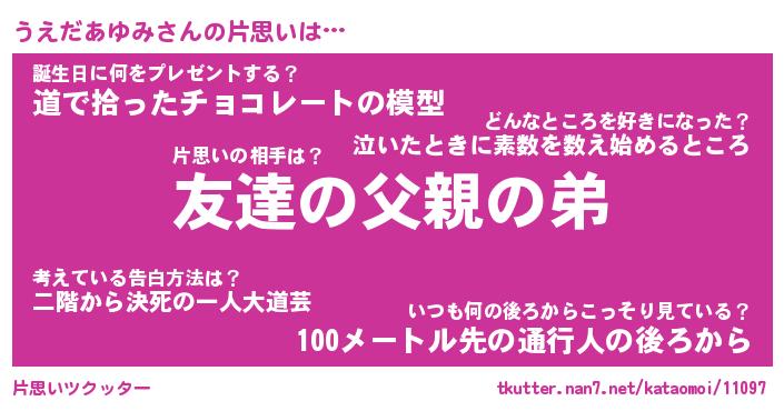 | 女子向けラノベタイトル風あだ名 | 『誰かこのうえだあゆみを説明してください! ~契約から始まるウェディング~』 |