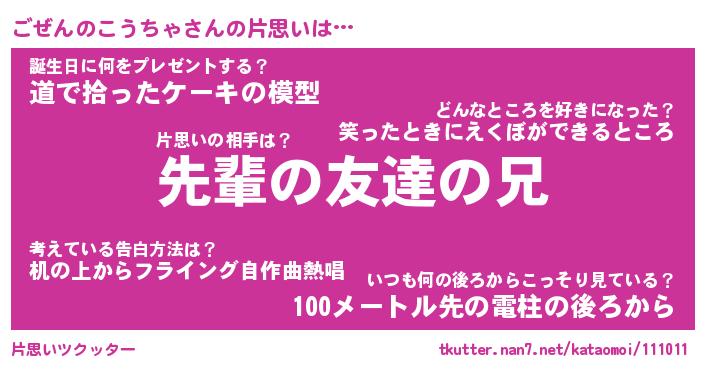 ツイッター ごぜんのこうちゃさんのツイッターID『katatsumuri_nyan