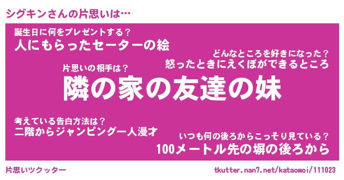 | ポケモン風あだ名 | 『シグチュウ』『シグキダネ』 |