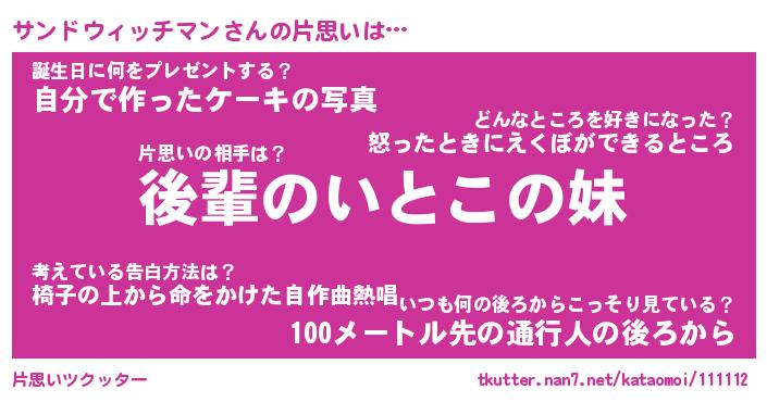 | 恥ずかしいあだ名 | 『プリティーサンドウィッチマン』 |
