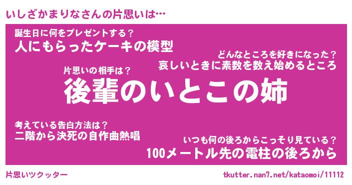 | 胡散臭い通販商品みたいなあだ名 | 『億万長者になれる水晶球…その名も「いしざかまりな」』 |