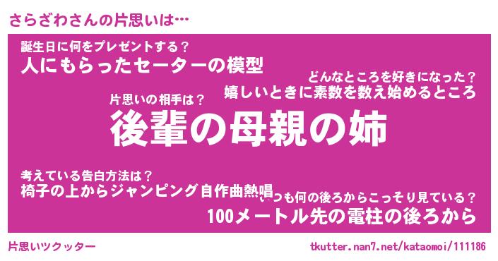 | 意味不明あだ名 | 『ペロリンさらざわ』『永久保存さらざわ』 |