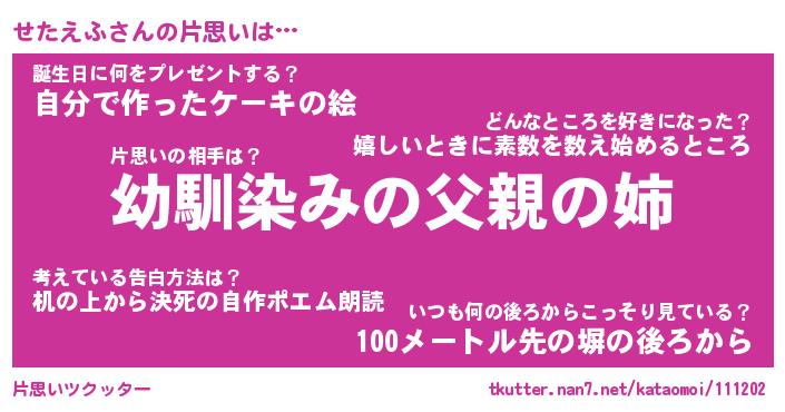 | 意味不明あだ名 | 『ペロリンせたえふ』『永久保存せたえふ』 |