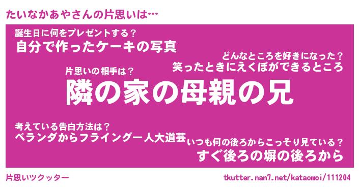 | 恥ずかしいあだ名 | 『プリティーたいなかあや』『たいっちょ』 |