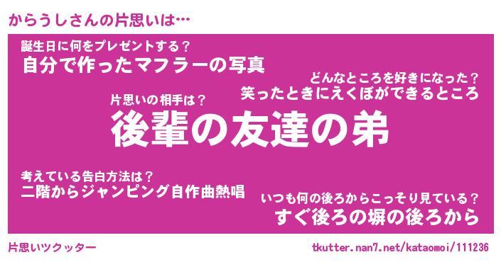 | ヘコむあだ名 | 『からっふぃ~』『つくし』 |