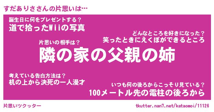 | 胡散臭い通販商品みたいなあだ名 | 『必ず成功する水晶球…その名も「すだありさ」』 |