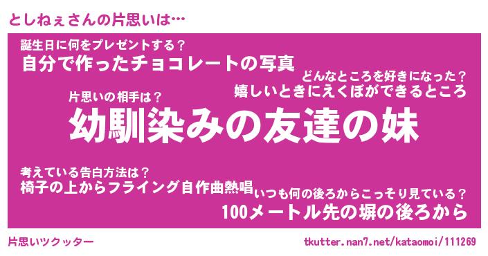 | ヘコむあだ名 | 『としっふぃ~』『牛乳』 |