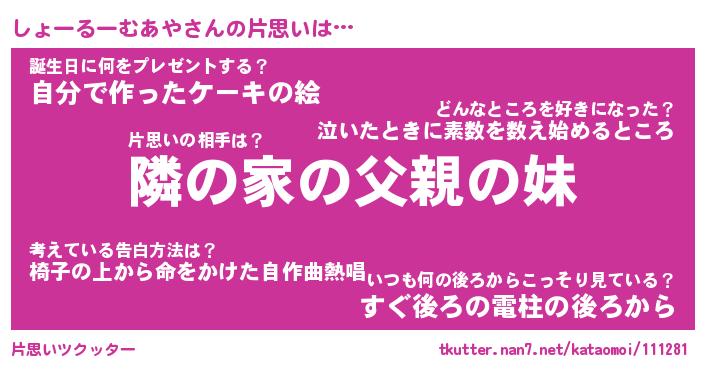 | 胡散臭い通販商品みたいなあだ名 | 『必ず成功する水晶球…その名も「しょーるーむあや」』 |