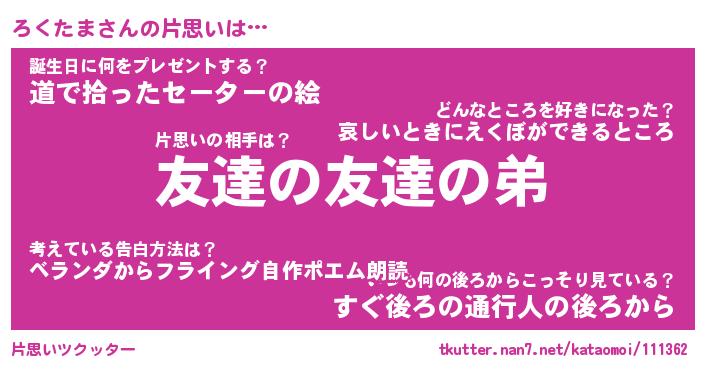 | ヘコむあだ名 | 『ろくっふぃ~』『つくし』 |