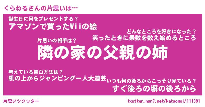 | ヘコむあだ名 | 『くらふぇ~』『なまこ酢』 |