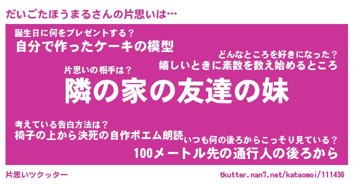| 男性向けラノベタイトル風あだ名 | 『だいごたほうまるの憂鬱』 |