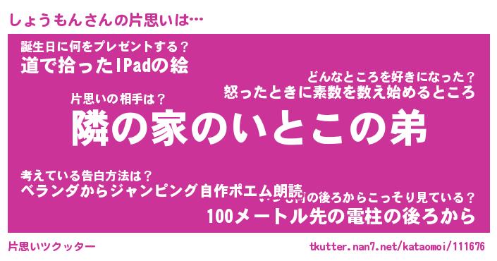 | 胡散臭い通販商品みたいなあだ名 | 『モテモテ間違いなし水晶球…その名も「しょうもん」』 |
