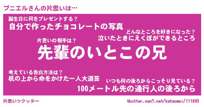 | ヘコむあだ名 | 『プニにゅー』『なまこ酢』『プニを』 |