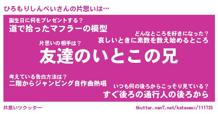 | 胡散臭い通販商品みたいなあだ名 | 『億万長者になれる霊験あらたかなお札…その名も「ひろもりしんぺい」』 |
