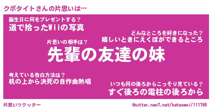 | 胡散臭い通販商品みたいなあだ名 | 『モテモテ間違いなし霊験あらたかなお札…その名も「クボタイト」』 |