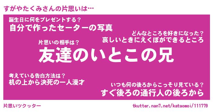 | 伝説のあだ名 | 『封印されしスナイパーすがやたくみ』 |