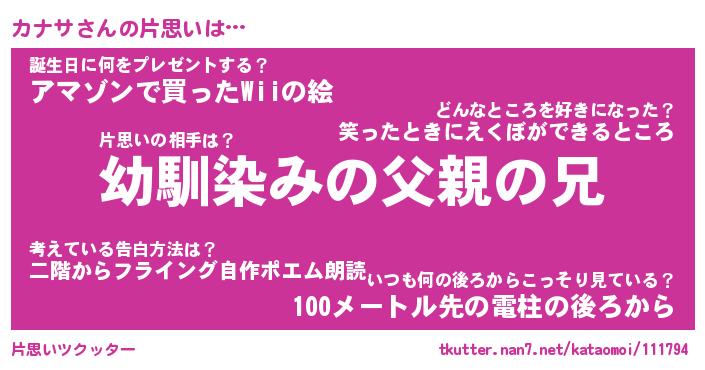 | ヘコむあだ名 | 『カナふぇ~』『なまこ酢』 |