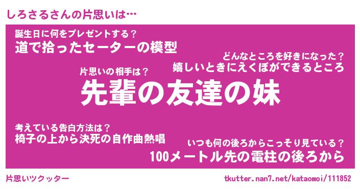 | ヘコむあだ名 | 『しろっふぃ~』『豆乳』『しろ太郎』 |